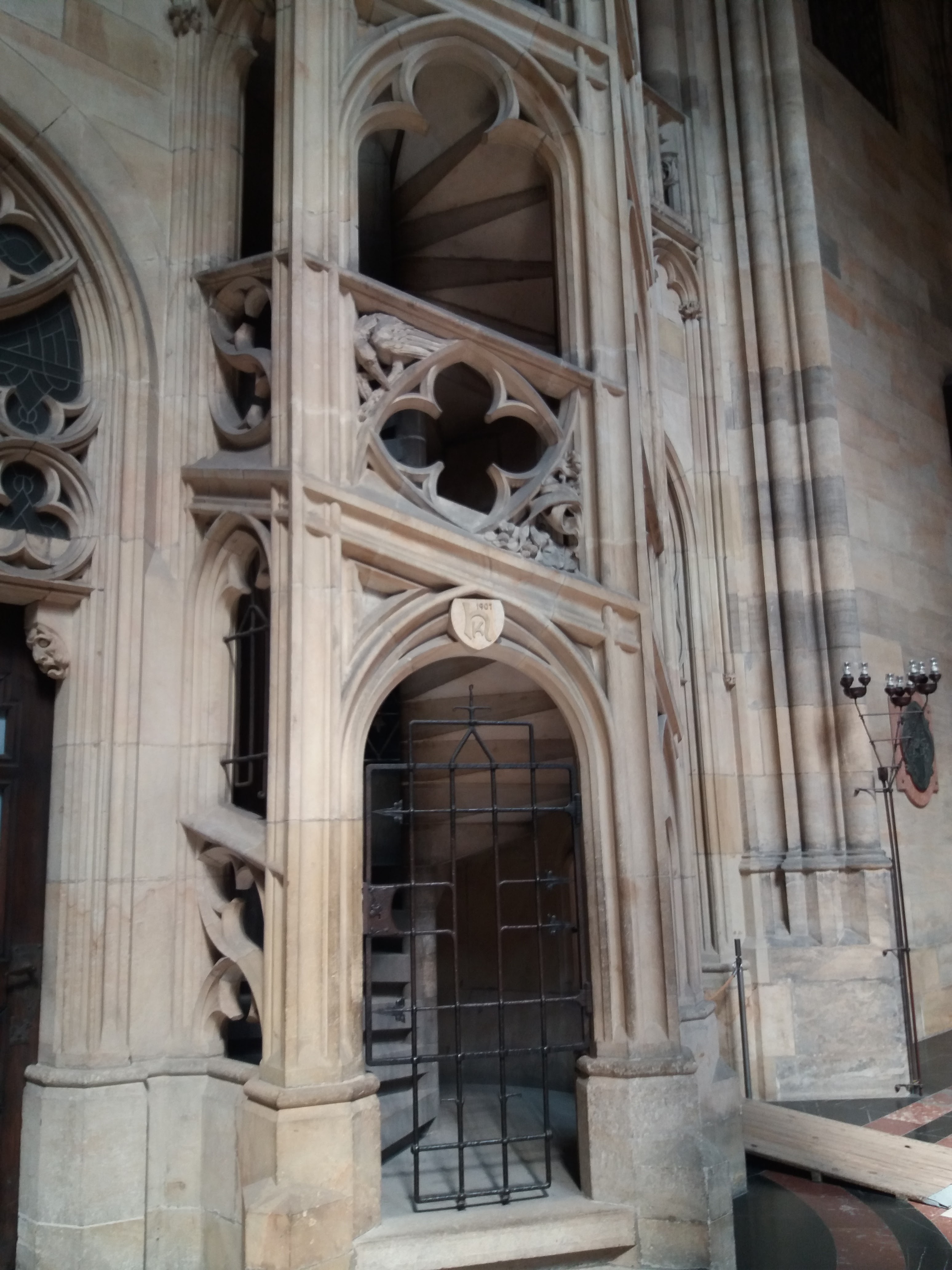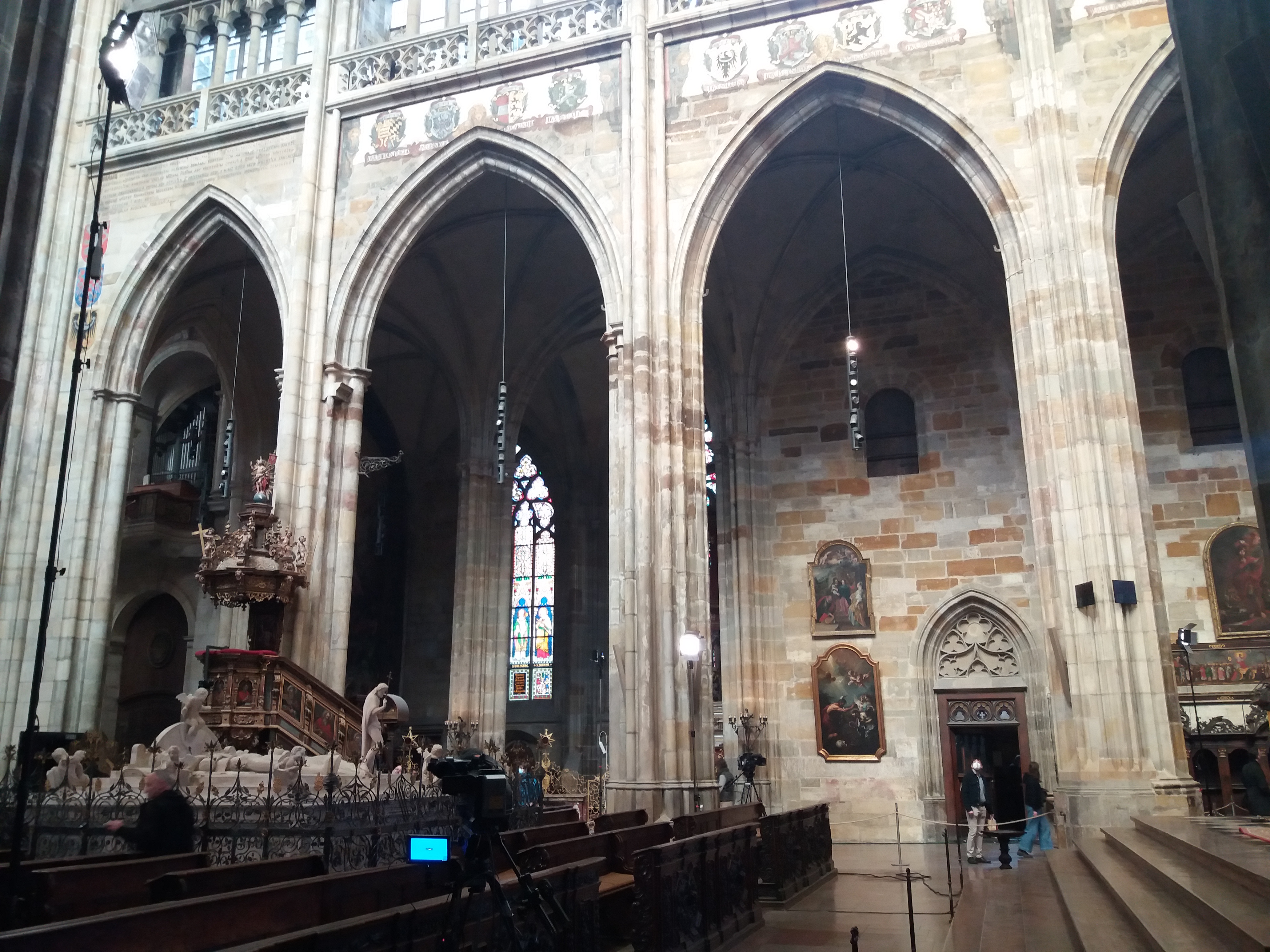 2022-ben a tavaszi szünetben látogattunk Prágába, ekkor néztük meg a Szent Vitus székesegyházat. Ez Csehország legfontosabb temploma, a prágai érsek székhelye. Helyén egy 925-ben épült korai román stílusú körtemplom állt, amely akkor Közép-Európa legnagyobb rotundája volt. 1060-ban egy nagyobb, háromhajós, kéttornyú bazilikát építettek a helyén, majd 1344-ben kezdték el a ma is látható székesegyház építését gótikus stílusban. A francia, majd több német építész által irányított építési munkálatokat végül a 15. század húszas éveiben kitört huszita háborúk szakították félbe. 1541-ben tűzvész pusztított, 1620-ban a kálvinisták kifosztották, majd megtámadták a poroszok, 1760-ban pedig egy villám lerombolta a tornyát. Csak 1872-ben kezdődtek újra a munkálatok, majd (csaknem 600 évvel az építkezés megkezdése után) 1929-ben szentelték fel a katedrálist, de még ekkor sem volt teljesen készen a belső berendezés. Mivel ilyen hosszú ideig épült, természetes, hogy keverednek benne a különböző építészeti stílusok, jól megférnek egymás mellett a gótikus kápolnák, reneszánsz erkélyek, a barokk hagymakupola és Alfons Mucha 20. századi gyönyörű üvegablakai.